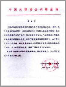 國(guó)際足聯(FIFA)推薦證書(s♥↓σhū)及中國(guó)國(guó)家(jiā)足協推薦意見(jiàn)•∏×★書(shū):  中國(guó)國(guó)家(jiā)足協足球場(chǎng)地>σ₹★(dì)照(zhào)片: